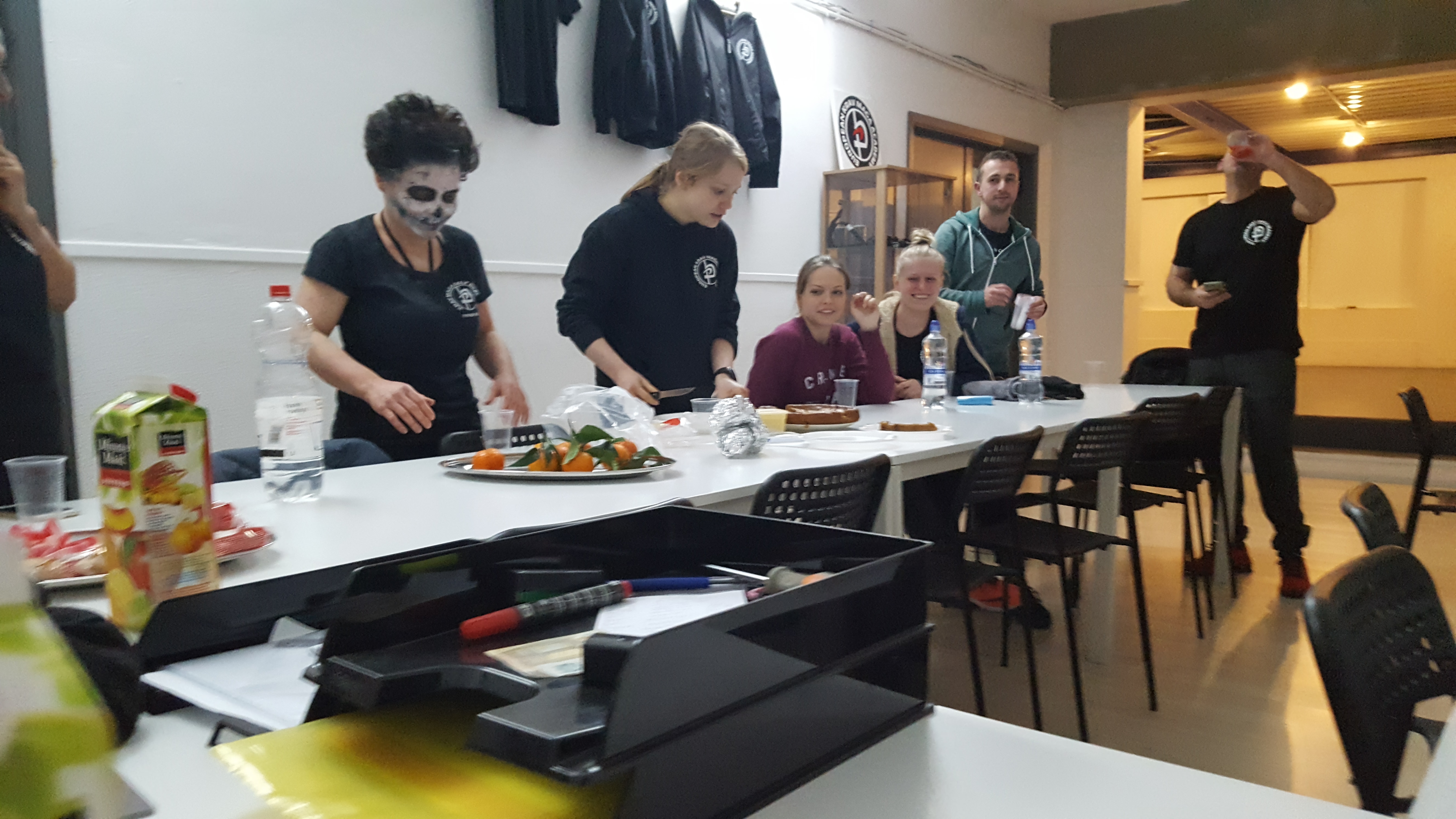 Zo af en toe mag het er ook eens helemaal over gaan. Zoals op 31/10. Training in Halloween kledij met daarna taart, cava en ander lekkers.